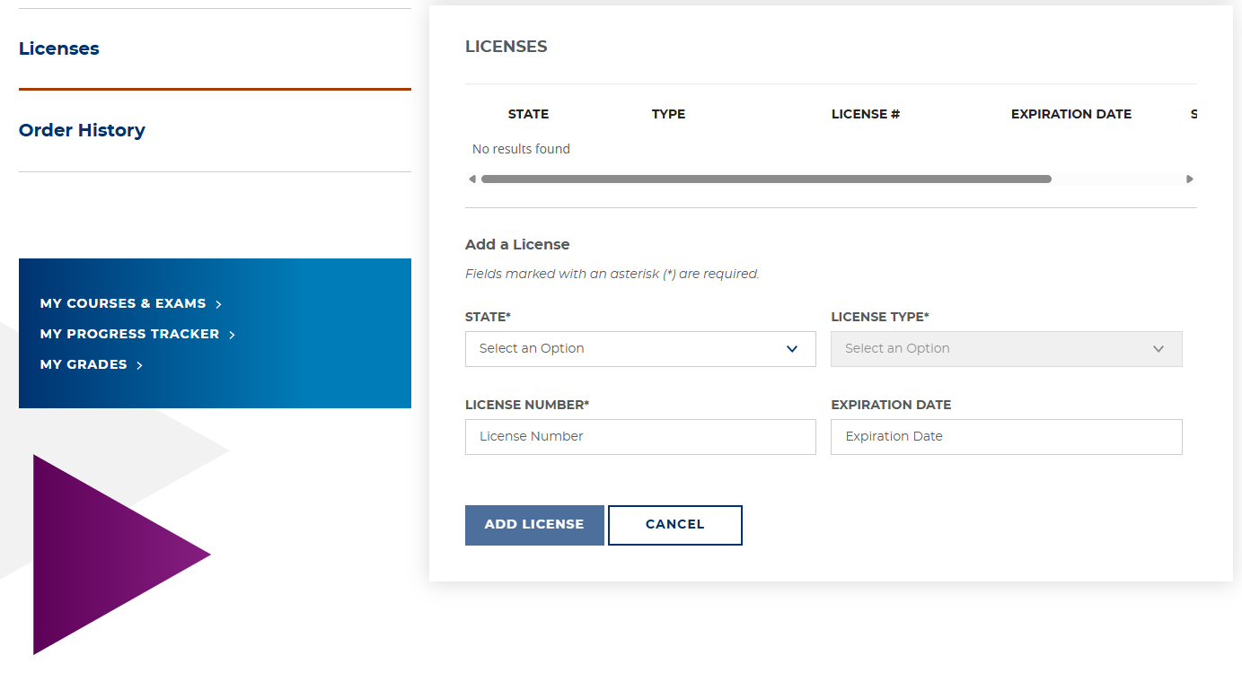 If you tested without license/NPN information on file and CE was not reported, add your license/NPN to your profile. Then contact Customer Success for next steps.